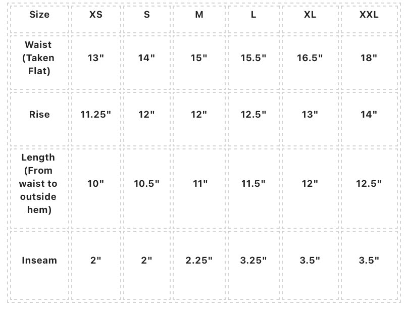 To care for The Short Short, wash in cold water and hang to dry. We do not recommend drying as shrinkage will occur.